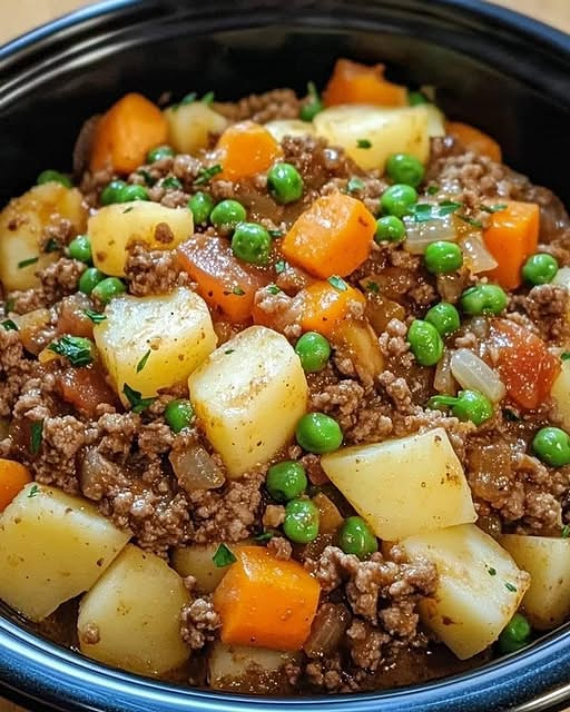 Savory ground beef, tender potatoes, and veggies all cooked together in your slow cooker! This hearty, comforting meal practically cooks itself—perfect for busy days or cozy nights at home.